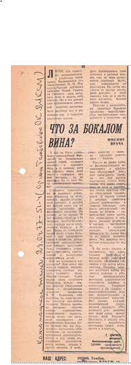 Я бы хотел сказать в заключение, что алкогольная проблема — прежде всего проблема взглядов, убеждений человека и уж потом медицинская. Подобно тому, как жертвами войны являются раненые и убитые, закономерными жертвами алкоголепития становятся. пьяницы и алкоголики. Умеренно пьющих я бы сравнил с бациллоносителями, ведь они распространяют и поддерживают пьянство. Вот почему — каждый, поднимающий бокал, должен подумать: «Что хорошего дает выпивка мне, моей семье, моему городу, моей Родине?» Подумать и вполне сознательно выработать программу своего отношения к алкоголю.